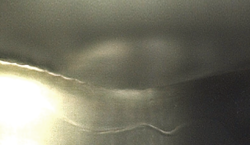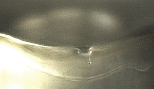 液体は衝突時に変形されて表面から飛び跳ねます。よって、薬剤が液状で皮膚表面に残るようになります。